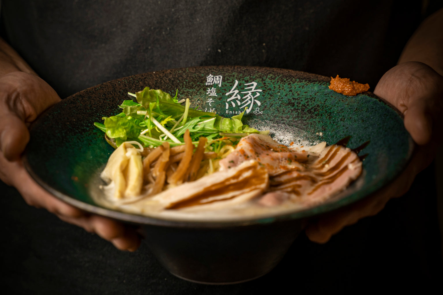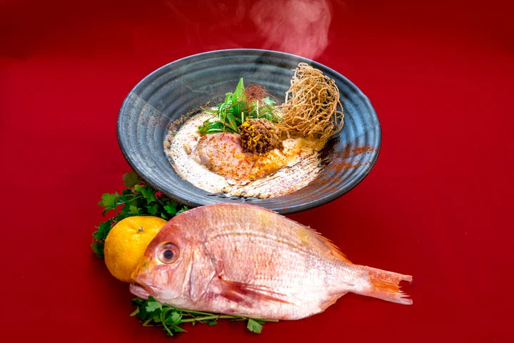 鯛、サーモン、牡蠣といった「和」の食材がフレンチ14年の技術とマリアージュし、他では味わうことができない新感覚のラーメンとしてお届けいたします。